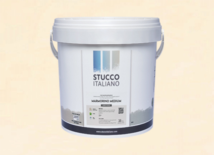 Grunda med primer och putsa tre lager Marmorino Medium, låt det första lagret torka helt innan de resterande två lagerna påförs. Instruktion för applicering finner du HÄR. Marmorino Medium är en kalkbaserad marmorputs som ger ytan en vacker lyster och djup med rikliga molniga mönster.