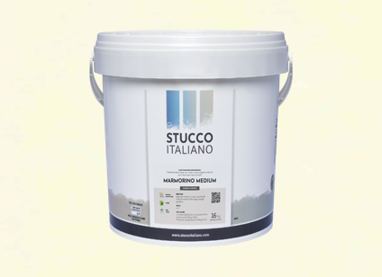 Grunda med primer och putsa tre lager Marmorino Medium, låt det första lagret torka helt innan de resterande två lagerna påförs. Instruktion för applicering finner du HÄR. Marmorino Medium är en kalkbaserad marmorputs som ger ytan en vacker lyster och djup med rikliga molniga mönster.
